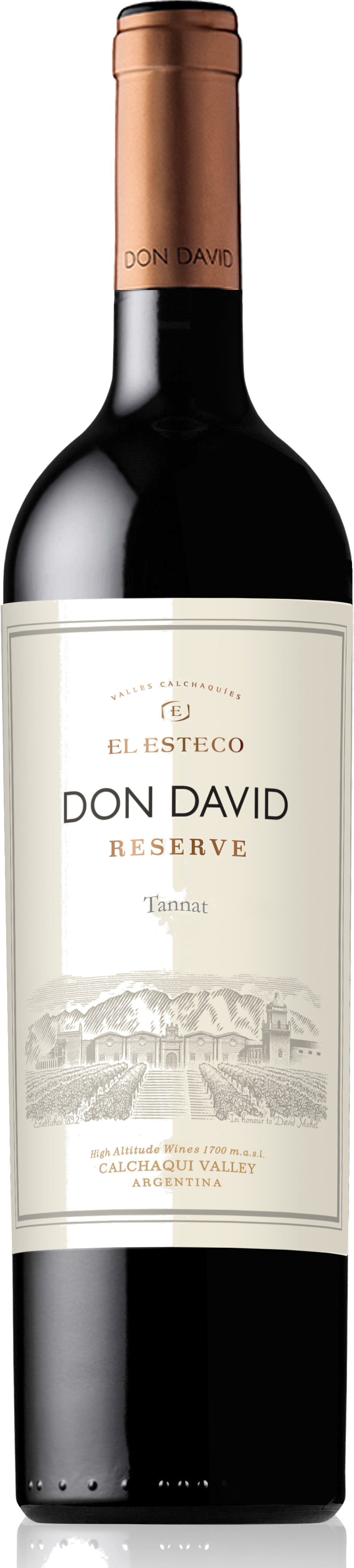 Don David wines come from the Bodega El Esteco Vineyard. Bodega El Esteco, founded in 1892 by David Michel and Gabriela Torino, is located in the Calchaqui Valley, which is in Argentina’s far northwest province of Salta. With over 1,500 acres of vineyards in what is known as the world’s highest growing region for wine, the Calchaqui Valley, Bodega El Esteco’s wines are reflective of their place of origin. The vineyards start at 5,500 feet in elevation and rising to over 6,600 feet above sea level. Bordered by two mountain ranges— the Quilmes to the west and the Aconquija to the east create a natural barrier and microclimate. Abundant sunshine, little rainfall, combined with high altitude create a recipe for a winemaker’s paradise. The region sees as little as six-eight inches of rain a year so irrigation is a must, allowing the winemaking and viticulture teams to irrigate as they see fit. Abundant sunshine 330-340 days a year, allows the grapes to achieve optimal ripeness; while the cool nights allow for proper acid levels to be achieved for a balanced wine in the end. All the grapes are hand-harvested and benefit from sustainable and environmentally friendly viticulture.